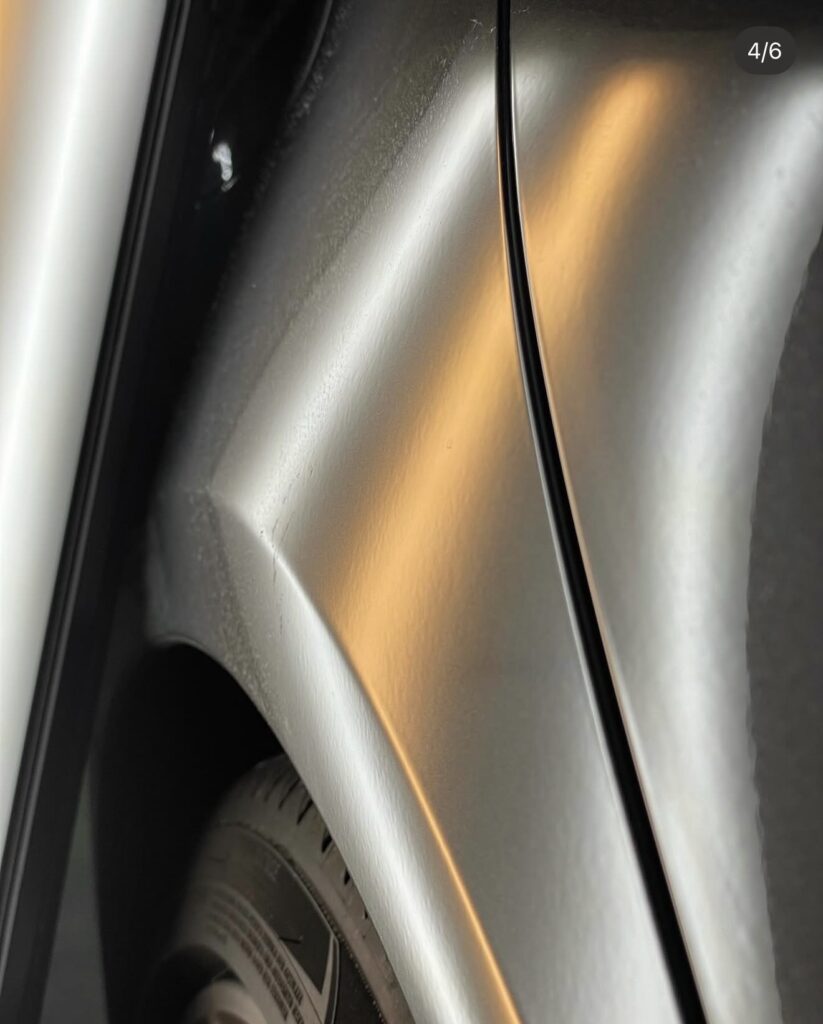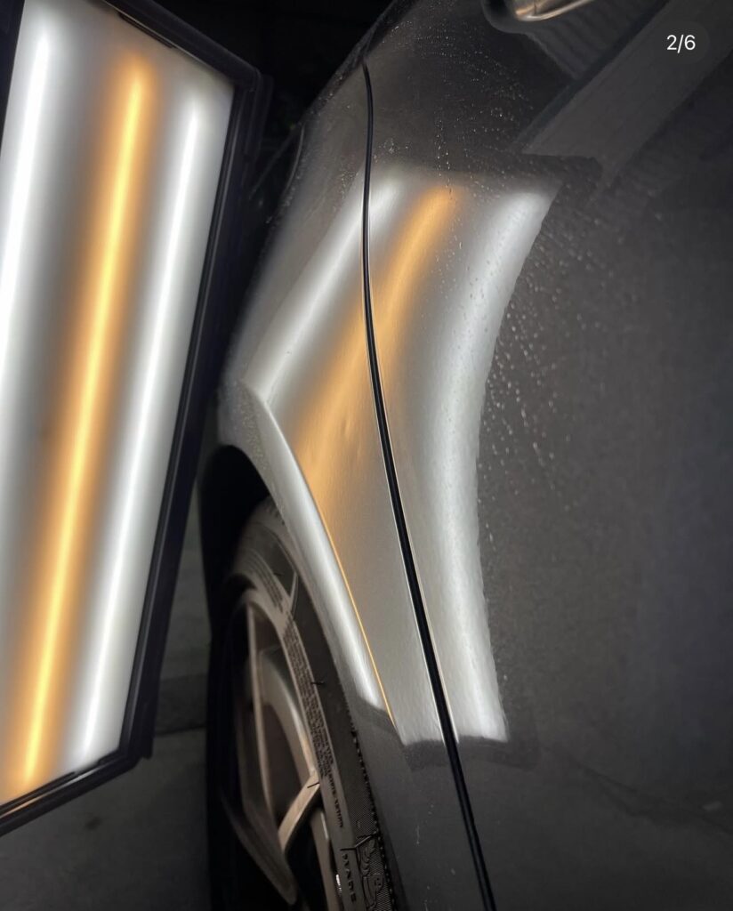 デントリペアの品質は、この「写り込みの正確さ」で決まります。GLCの優雅なプレスラインも、熟練の職人技で違和感なく復元いたしました。