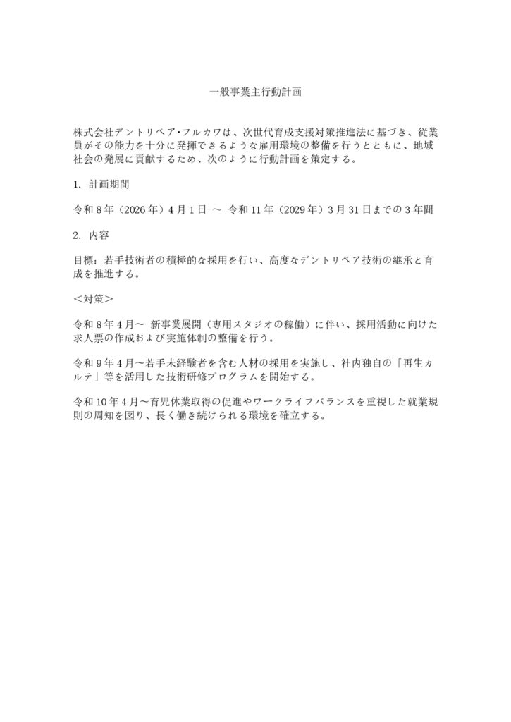 一般事業主行動計画 のお知らせ